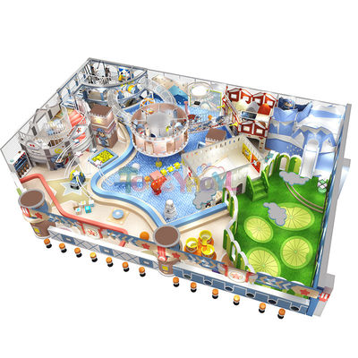 The main structure is made from galvanized steel, resistant to rust and deformation. Soft-play components use tear-resistant, fire-retardant materials, ensuring long-term stability in busy indoor playgrounds.